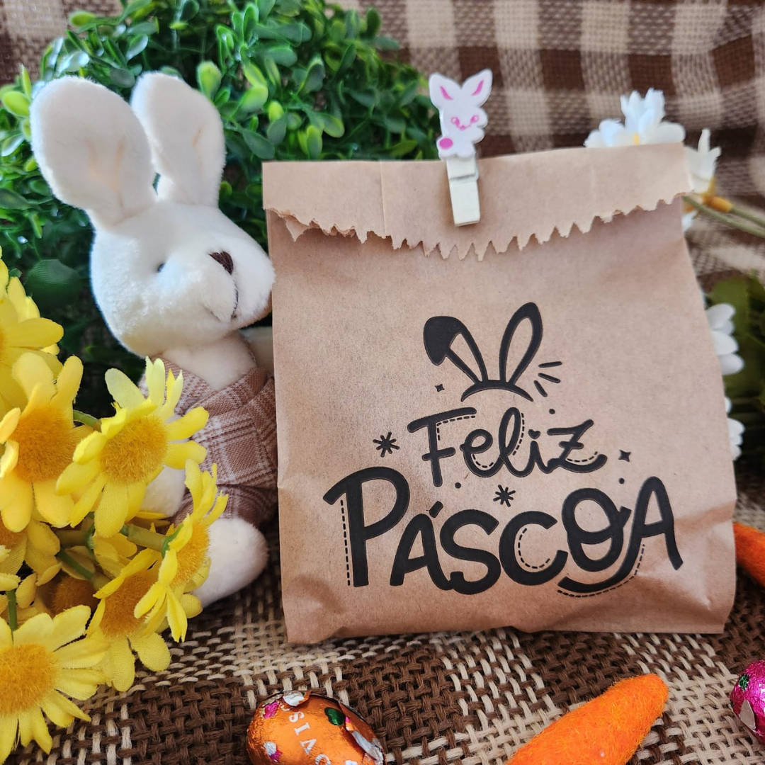 25UN Saquinhos de papel pardo 10x15cm Feliz Páscoa