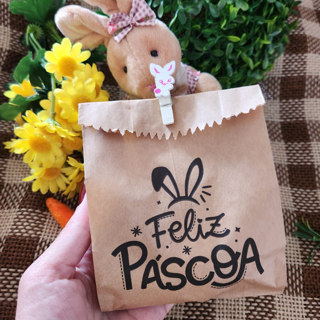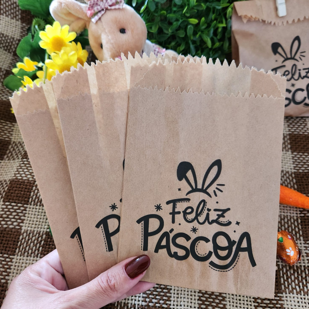25 Un Saquinhos de papel pardo para lembrancinha de páscoa Feliz Páscoa